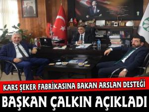 Başkan Adem Çalkın, Kars Milletvekili Selahattin Beyribey ve parti yönetimi ile Kars Şeker Fabrikası'na ziyarette bulunan Çalkın, burada yaptığı açıklamada Kars Şeker Fabrikası'nın teknolojik yenilikler in yapımı için gerekli ödeneğin alınması konusuyla ilgili çalışmaların devam ettiğini belirtti.