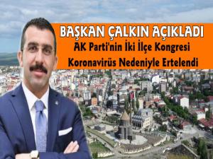 AK Parti Kars İl Başkanı Adem Çalkın 14-15 Mart 2020 tarihinde gerçekleştirilecek olan Akyaka ve Arpaçay İlçe teşkilat kongrelerinin Koronavirüs tedbirleri kapsamında ileri tarihe ertelendiğini duyurdu.
