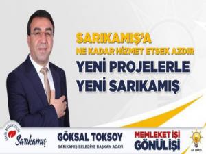 İşte Sarıkamış Belediye Başkanı Göksal Toksyo'un önümüzdeki dönemde yapacağı bir kaç projeden bazıları:"Sanayi Sitesinin Çevre yoluna taşınması, Bebek Gölü Milli Müdafa Parkı, SARIKAMIŞ Deresi Islahı, 8 adet köprü projesi, Yeni Otogar, Kapalı Pazar Yeri, Kentsel Dönüşüm, Millet Bahçesi, Toki Bisiklet yolu ve park Düzenlemesi, Şehir ve Oteller Bölgesi Aydınlatmaları, Oteller Bölgesi Elektrik Hatlarının yeraltına alınması, Kültür ve Sanat Merkezi, Yeni Düğün Salonu, Toki Bölgesi Ticaret Merkezi ve Belediye Sarayının yenilenmesi projeleri ile Yeni dönemde SARIKAMIŞ daha güzel olacak inşallah."