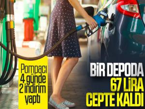 Hafta başında 60 litrelik deposu bulunan araca alınacak benzinde ödenecek rakam 398 lirayken, bu rakam bugün itibariyle 331 liraya kadar indi.