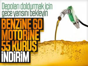 Petrol fiyatlarının düşmesinin ardından benzine 60 kuruş, motorine ise 55 kuruş indirim geliyor.
