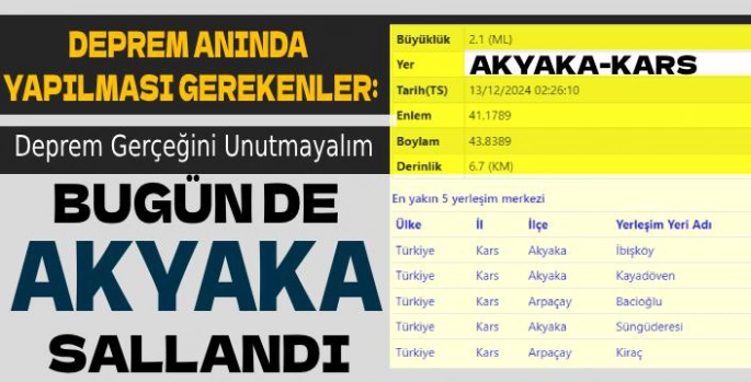 Bugün de Akyaka Sallandı: Deprem Gerçeğini Unutmayalım!