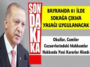 Erdoğan; Ramazan Bayramı nedeniyle tüm yurtta tatil süresince sokağa çıkma kısıtlamasının uygulanacağını duyurdu.