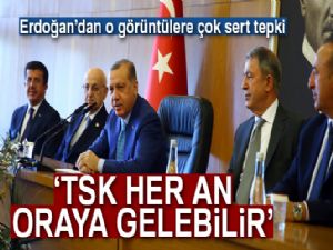 Medyaya yansıyan fotoğrafların üzücü olduğunu belirten Erdoğan, "Ne yazık ki YPG gibi bir terör örgütünün paçavralarının olduğu bir konvoy içinde Amerika bayraklarının dalgalanması bizleri ciddi manada üzmüştür. Bunları da ayın 16'sında yapacağımız ziyarette sayın başkan Trump'a göstereceğiz. Madem ki biz uluslararası teröre ortak olarak karşıyız, o zaman bu durum nedir diye kendilerine bunları göstereceğiz. Terörle mücadele eğer ortak bir platformda yürümezse, bugün bize yarın başkasına olacaktır. Bunu paylaşmalıyız. Bu gelenek, buna gelenek diyorum. Sayın Obama döneminde başlayan süreç devam ediyor. Bunun noktalanması lazım. Aksi takdirde hem bölgedeki sıkıntı devam edecektir, hem de kendileri rahatsız olacak, bizler de stratejik müttefikler olarak bundan ciddi manada rahatsız olacağız. Biz o zaman biz göbeğimizi kendimiz keseceğiz. Karaçok'ta, Sincar'da ne olduysa artık bunlara devam etme durumunda kalacağız. Bir gece ansızın gelebiliriz derken bunu kastediyorum. Bütün oralardaki terör örgütlerine. Herhalde tarih ve haber vererek gidecek değiliz ama bilecekler ki TSK her an buralara gelebilir. Biz endişe ile yaşamaktansa onlar korku ile yaşasınlar" ifadelerini kullandı.