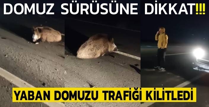 Domuz Sürülerine Dikkat! Yaban Domuzu Trafiği Kilitledi