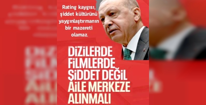 Konuşmasında medya içeriklerine de dikkat çeken Erdoğan, televizyon ve dijital platformlardaki şiddet unsurlarına tepki gösterdi. “Rating kaygısı, şiddet kültürünü yaygınlaştırmanın mazereti olamaz” diyen Erdoğan, aileyi, merhameti ve toplumsal değerleri öne çıkaran yapımların artırılması gerektiğini vurguladı.