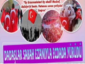 Ezan ve çağrılarla kentteki camilerde buluşan vatandaşlar, sabah namaz sonrası okunan salalar eşliğinde Karskapı Şehitliği'ne yürüyüp bir araya geldi. Çocukların ve yaşlıların da aralarında bulunduğu Erzurumlular, ellerinde Türk bayrakları ile 4 kilometre uzaktaki Top Dağı'nda yer alan ve "93 Harbi" sırasında düşmek üzereyken camilerden yapılan çağrıyla askerlerin yardımına koşan Erzurumluların destekleri ile düşmanın bozguna uğratıldığı tabyalara kadar yürüdü. Burada şehitler için Kur'an-ı Kerim okunarak dualar edildi. Ruslar ve Ermenilere karşı kahramanca mücadele edilen tabyaları gezen vatandaşlar, Aziziye savunmasındaki fedakarlığıyla tarihe geçen Nene Hatun'un kabrini de ziyaret etti.