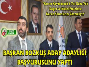 Başkan Bozkuş'un başvuru evrağını AK Parti Kars İl Başkanı Adem Çalkın teslim alırken, Başkan Bozkuş'u partililer ve vatandaşlarda yalnız bırakmadı.