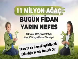 Etkinlik kapsamında da Kars'ta 29 Bin fidan toprakla buluşturulacak olup, fidan sahiplenmek için sizde başvurabilirsiniz.Sizler adına dikeceğimiz fidanları bu site üzerinden sanal olarak sahiplenebilmenizi istiyoruz. Sahiplendiğiniz fidanların dikim lokasyonu ile tören alanları farklı yerler olabilir.