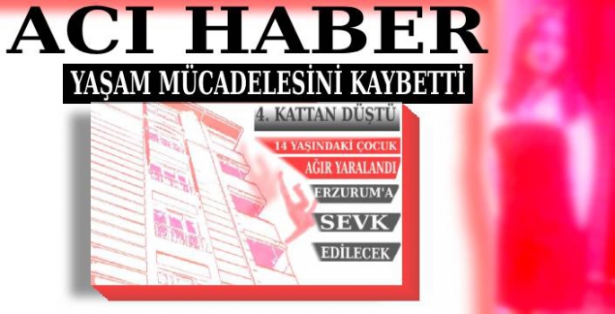 Kars merkez Yenişehir Mahallesi’nde yaşanan olay sonrası Zilan. O (14) hastaneye kaldırılmış ve hayata tutunması için tedavi altına alınmıştı. Zilan’ın binadan düşüş nedeni henüz belirlenemezken, tedavi gördüğü hastanede tüm müdahalelere rağmen kurtarılamadığı öğrenildi.