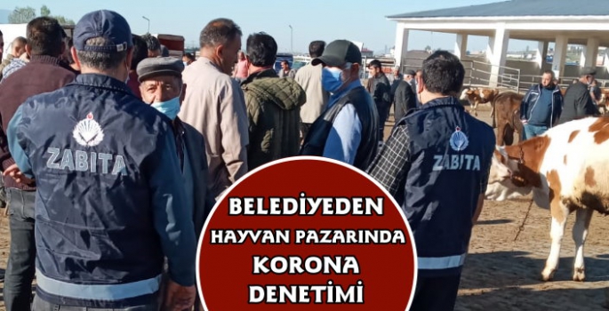 Hayvan pazarının yeniden hizmet vermesi üzerine Belediyemiz Zabıta Müdürlüğü ekipleri Covid-19 ile mücadele tedbirleri kapsamında hayvan pazarında denetimlerini sürdürüyor." ifadelerine yer verildi.