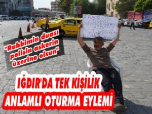 Iğdır'da bir vatandaş son günlerde Türkiye'de yaşanan olaylardan dolayı tek başına oturma eylemi yaptı.