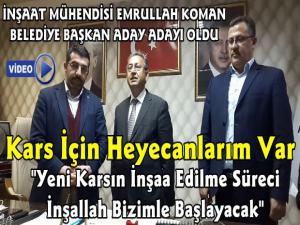 Siyasetçi ve İnşaat Mühendisi olan Emrullah Koman AK Parti Kars İl Başkanlığı'na gelerek, İl Başkanı Adem Çalkın'a resmi aday adaylığı müracaat dosyasını teslim etti.