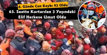 Enkaz altında kalan vatandaşlara ulaşmak için arama kurtarma ekipleri aralıksız çalışmalarını sürdürürken aramalarında dördüncü günün 65. saatinde göçük altında kalan 3 yaşındaki Elif isimli kız çocuğunun kurtarılması tüm Türkiye'ye umut oldu.