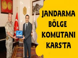 Bir dizi ziyaret ve incelemelerde bulunmak üzere Karsa gelen Erzurum Jandarma Bölge Komutanı Tuğgeneral Semih Okyar, Valilik ziyaretinde Valilik Şeref Defterini imzalamasının ardından Kars Valisi Türker Öksüzle bir süre görüştü.