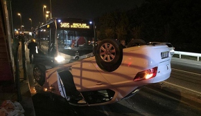 Daha sonra takla atan otomobil bariyerleri aşarak metrobüs yoluna düştü. Sürücü kazadan yara almadan kurtuldu.