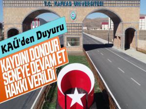 Kars Güncel- Kafkas Üniversitesi'nden yapılan duyuruda; Yükseköğretim kurumlarında önlisans, lisans ve lisansüstü düzeyde kayıtlı olup öğrenim gören öğrencilerin, kayıtlı oldukları yükseköğretim kurumlarından talep etmeleri halinde 2019-2020 eğitim öğretim yılı bahar döneminde kayıtlarının dondurulmasına ve kayıt dondurulan sürenin azami süreden sayılmamasına" ifadelerine yer verilirken açıklamanın devamında lisansüstü eğitimde tez aşamasında olan öğrenciler hakkında da duyuruda bulunuldu.