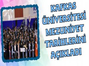 Kars Güncel- 2018-2019 eğitim öğretim yılının sona ermesine sayılı günler kala Kafkas Üniversitesi fakülte ve yüksek okulların resmi mezuniyet programları ve tarihlerini açıkladı. KAÜ'lü öğrenciler için düzenlenecek olan mezuniyet törenleri fakültelerin farklı tarihlerine göre 12 Haziran- 24 Haziran 2019 tarihleri arasında gerçekleşecek.