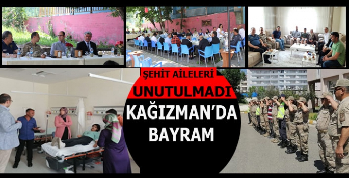 Kaymakam Türkmen, Kurban Bayramı’nın ülkemize, ilçemize, tüm insanlığa huzur ve kardeşlik getirmesini dileyerek böyle anlamlı bir günde bayramlaşmaya gelen herkese teşekkür etti. Programının ardından Kaymakamımız Hamza Türkmen beraberindeki heyetle birlikte Kağızman Polis Merkezi Amirliği, Kağızman Jandarma Komutanlığı, Kağızman devlet Hastanesini ziyaret ederek görevi başında olan personellerin ve tedavi gören hastaların bayramını tebrik etti. Akabinde heyet, Kağızman’da ikamet eden Şehit ailelerine bayram ziyareti gerçekleştirdi.