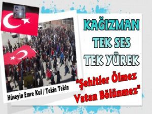 Kağızman Belediye Başkanı Nevzat Yıldız Burada yaptığı konuşmada"Atalarımız Çanakkale'de ,aç ve susuz kaldılar,şehit oldular,Yanıbaşımızda Sarıkamışta 90 bin askerimiz soğuk'a aldırış etmeden bu vatan uğruna şehit oldular, ama böyle vatan hainlerine fırsat vermediler bizlerde var oldukça bu birlik ve ve beraberliğimiz olduğu müddetce . Bizlerde Çanakkalede,Sarıkamışta canlarını hiçe sayarak şehit olan atalarımızın torunları olarak bu hainlere, alçaklara, haddini bilmezlere karşı boyun eğmeyeceğiz." diyen Yıldız"PKK 35 yıldır, Kürt, Zaza ve Arap halkının hakkını savunduğunu iddia ediyor. Allah aşkına sizlere soruyorum, bunların yüzünden köylerinize gidemediniz tarlanızı çayırınızı biçemediniz,hayvanlarınızı dağa çıkaramadınız köylerinize kentlerinize rahat gidemediniz,Bizler Kürdü,Türkü,lazı,çerkezi,alevive sünni Kardeşlerimizle sırt sıta vererek bu vatan topraklarını kanımızla canımızla kazandık,kimse bizi bölmedi bölemeyecektir,bölmeyede kimsenin gücü yetmeyecektir, bu hakımız her zaman olduğu gibi bundan sonra da devletin, milletin ve bayrağın yanında olacaklarını ifade etti.konuşmaların ardından kalabalık sessiz bir şekilde dağıldı.
