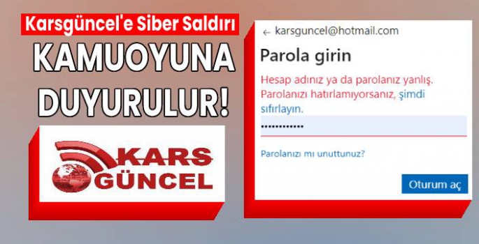 Karsgüncel Haber sitemizin resmi mail adresine yapılan siber saldırı bilgisini kamuoyunun bilgisine sunarız.