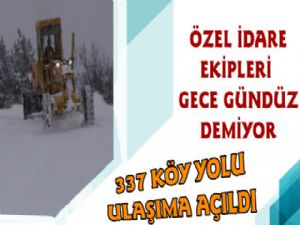İki gündür etkili olan kar ve tipiden kapalı bulunan 156 köyden 94'ü yapılan çalışmalar sonucunda yeniden ulaşıma açılırken kapalı bulunan 62 köy yolunun da ulaşıma açılması için İl Özel İdaresi karla mücadele ekipleri yoğun çaba sarf ediyor.