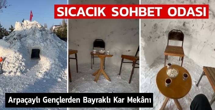 Oluşturulan kar mekânının tepesine asılan Türk bayrağı ise dikkat çekiyor. Gençler, hem sohbet edip çay içtikleri bu alanla kış günlerinde kendilerine sıcak bir buluşma noktası oluşturuyor hem de ortaya ilgi gören bir görüntü çıkarıyor.