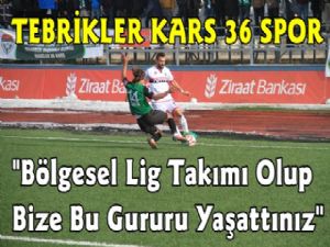 Bölgesel Ligden çıkarak Ziraat Türkiye Kupasında ilimizi ve Karsı ellerinden gelenin fazlasını yaparak temsil eden Kars 36 Spor oyuncularına, yönetimine, taraftarlarına ve desteklerini bir an bile esirgemeyen Karslı vatandaşlarımıza sonsuz teşekkürler.
