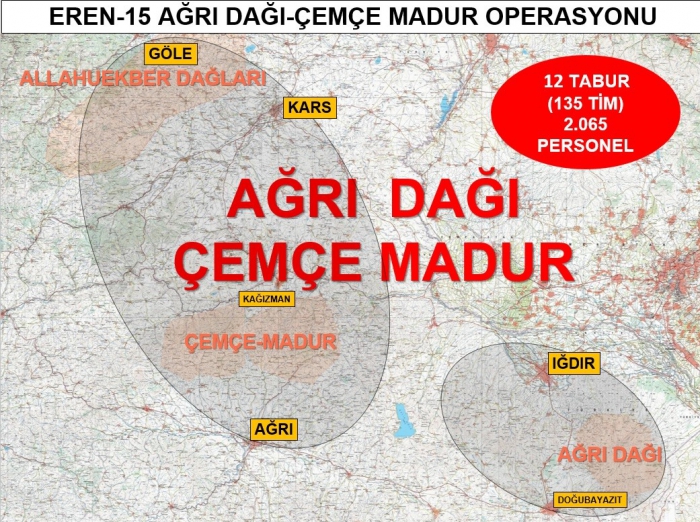 Kars Güncel- İçişleri Bakanlığınca yapılan açıklamada; "Bölücü terör örgütünü tamamen ülke gündeminden çıkarmak ve bölgede barındığı değerlendirilen teröristleri etkisiz hale getirmek maksadıyla Ağrı-Iğdır-Kars-Ardahan İllerinde Eren-15 Ağrı Dağı-Çemçe Madur Operasyonu başlatıldı.