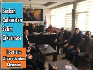 Selim Belediye Başkanı Coşkun Altun ise İl Başkanı Adem Çalkın ve yönetiminin ziyaretlerinden duyduğu memnuniyeti ifade ederek, Selim ilçemizde belediye olarak halkımızın hizmetine sunmak üzere planladığımız bütün projelere destek olan Ulaştırma Denizcilik ve Haberleşme Bakanı Ahmet Arslan, Kars Milletvekili Selahattin Beyribey ile bu projelerin takibi ve devamının sağlanması noktasında sunduğunuz katkılardan dolayı ilçemiz ve vatandaşlarımız adına teşekkür ediyorum. Selim İlçemizde halkımızın hizmetine sunacağımız projelerimiz aralıksız gerçekleştiriliyor, bizlerde bunun memnuniyeti ve gururunu yaşıyoruz. Her Şey Hizmetin En İyisini Hak Eden Selim İlçemiz ve halkımız için" açıklamasında bulundu.
