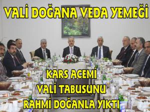 Kars Valisi Rahmi Doğan ise Ankara'dan buraya gelerek bu gün bizimle olduğunuz için teşekkür ediyorum. 30 ay birlikte çalıştık sayın bakanım, ilimizde gerek yönetimler gerek teşkilatlarla bir gün olsun karşı karşıya gelmedik, eğer tansiyon yükseldi ise buda hizmetin yapılması gereğiydi. Bir darbe ve iki seçimi birlikte gördük burada bu süre içerisinde bunlar önemli merhaleler. ama şükür ki sağlamış olduğunuz imkanlar ve desteklerle bunların üstesinden geldik. Karstan gönül bağımızı hiç bir zaman koparmayacağız. Kars benim için iyi bir staj oldu, ilk valiliğim burda. Burada bu kadar çeşitli olayı görmüş olmak, bu kadar yatırım ve projenin içerisinde olmak gerçekten benim için büyük bir tecrübe oldu. Sizlerden ve tüm Kars halkından haklarını helal etmelerini istiyorum." dedi.