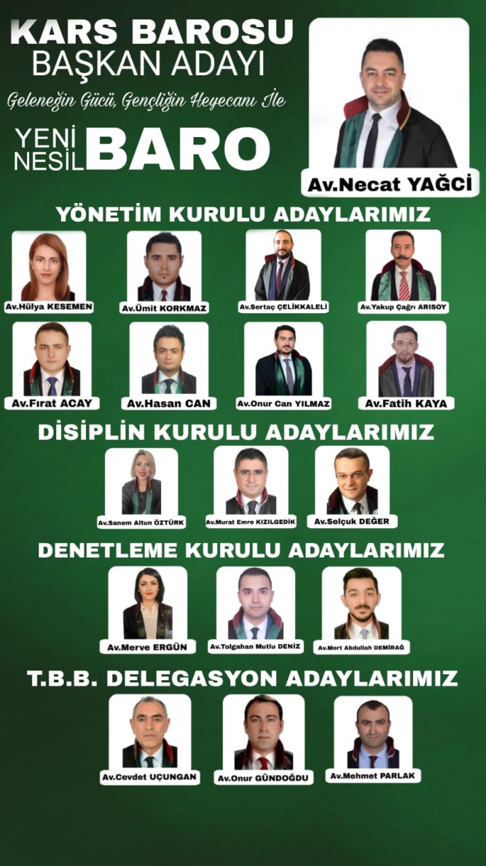 Kars Barosunun 21. Olağan Genel Kurulu yapıldı. Kongrede mevcut başkan aday olmazken, Yagcı ve Gül kıyasıya yarıştı. Seçimin galibi Av.Necat Yağcı oldu.