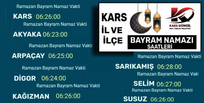İşte Kars ve ilçelerinin 2025 Ramazan Bayramı, Bayram Namazı saatleri: