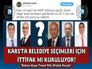 Fenomen hesap Ankara Kuşu'na takipçisinin; "Kuş , Iğdır'da AKP neden MHP 'yi desteklemedi? Iğdır , PKK'ya teslim edildi resmen." ifadelerini belirten tweeti üzerine Ankara Kuşu yaptığı paylaşımda;Kars ve Igdır'da HDP oldukça güçlü. Şuan değil ama ilerleyen günlerde bu iki il için de ittifak söz konusu olabilir. " şeklinde paylaşımı oldu.