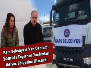Kars Belediyesi tarafından Van'da meydana gelen deprem sonrasında başlatılan yardım kampanyasında toplanan yardımlar teslim edildi.