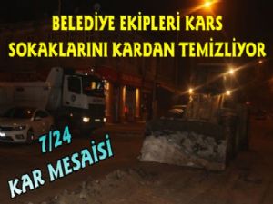 Kars Güncel- Kars'ta kar yağışının ardından ana ve ara yollarda biriken karların temizleme çalışmaları Kars Belediyesi tarafından hummalı bir şekilde devam ediyor. Özellikle şehir merkezindeki ana ve ara arterlerde çalışma başlatan belediye ekipleri yağan karı şehir dışına taşımak için üstün çaba sarf ediyor. Özellikle gündüzleri şehrin trafiğinin yoğun olduğu bölgelerde geceleri kar temizleme çalışması başlatan Kars Belediyesi ekipleri kar temizleme çalışmalarını gece saatlerine bırakmasının sebebi ise geceleri trafik yoğunluğunun gündüze göre daha az olmasından dolayı olduğu bildirildi. Edinilen bilgiye göre Kars'ta özellikle şehir içindeki kar temizleme çalışmalarının aralıksız devam edeceği öğrenilirken, çalışmanın gecenin ilerleyen saatlerinde de devam edeceği öğrenildi.