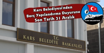 Kars Güncel- Belediye Başkanlığı'ndan yapılan açıklamada; "Su, Emlak, Çevre Temizliği ve İlan Reklam Vergisi borçlarınızı yapılandırarak faiz affından yararlanmanız için sizleri Belediyemize bekliyoruz.