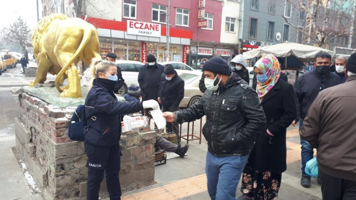 Vali/Belediye Başkanı Türker Öksüz'ün talimatıyla; il genelinde başlatılan dezenfekte çalışmaları devam ederken, Zabıta Müdürlüğü ekipleri de vatandaşlara ücretsiz maske dağıtımı yapıyor.