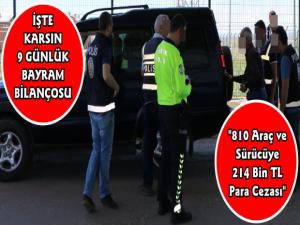 -7897 adet araç ve sürücüsü kontrol edilmiş, 810 adet araç ve sürücüsüne Karayolları Trafik Kanununun muhtelif maddelerinden toplam 214.330.00 TL trafik idari para cezası karar tutanağı düzenlenmiştir.