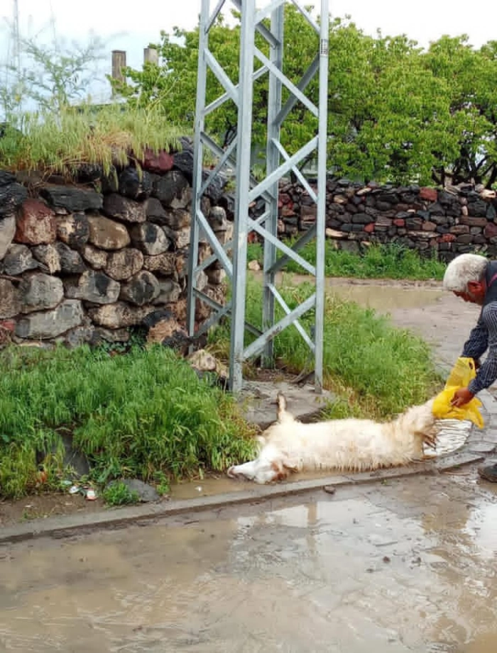 KARS – Digor ilçesine bağlı Kocaköy'de, elektrik kaçağı bulunan bir elektrik direğine temas eden keçi, akıma kapılarak telef oldu. Olay, akşam saatlerinde etkili olan yağmurun ardından meydana geldi.