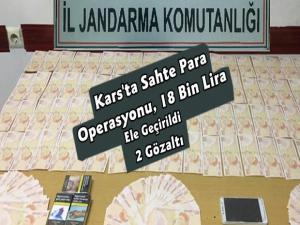 Kars İl Jandarma Komutanlığımızca konuyla ilgili oluşturulan özel ekip tarafından yapılan titiz planlama, çalışma ve takip sonucunda, sahte para ile alışveriş yapan 2 şüpheli şahıs tespit edilmiştir. Adli makamlarca alınan arama kararıyla yapılan arama neticesinde 360 adet sahte 50 TLlik banknotlar halinde 18.000 TL sahte para ele geçirilmiştir. Şüpheli 2 şahıs ile ilgili adli işlem yapılmıştır." denildi.