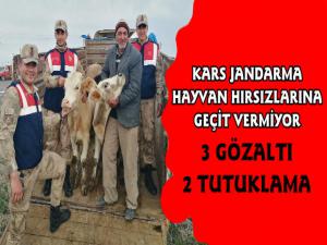 Görevli jandarma ekiplerinin yaptığı incelemede hayvanların M.İ. ve K.E. isimli şahıslar tarafından, kayıp hayvanların Arpaçay İlçesi Karakale Köyü'nde yaşayan M.O.'ya satıldığı tespit edildi. Jandarma ekipleri gerekli çalışmaları yaptıktan sonra M.İ., K.E. ve M.O.'yu hayvan hırsızlığı suçundan gözaltına aldı.