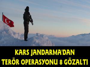 Kars Güncel- İl Jandarma Komutanlığınca yürütülen planlı faaliyetler ve yapılan çalışmalar kapsamında Kars Merkez ve Digor İlçesi'nde PKK/KCK terör örgütünün propagandasını yaptığı tespit edilen 8 şüpheli de gözaltına alındı.
