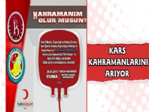 Kars İl Meclisi Başkanlığı, Kafkas Üniversitesi Öğrenci Konseyi Başkanlığı ve Kızılay tarafından "Kahramanım Olur musun?" kampanyası ile toplu kan bağışı yapılacak.