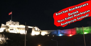 Kars Güncel- Azerbaycan ve Ermenistan arasında başlayan cephe savaşında Türkiye'nin çeşitli kentlerinden destekler gelirken, Kars'ta da kale surlarında Azerbaycan bayrağının renkleri yansıtıldı.