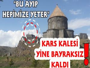 Kars Güncel- Kars Kalesinin o muhteşem görüntüsünü süsleyen YÜCE TÜRK Bayrağı bu gün saatlerdir göndere çekilmedi. Neden ve ne sebeple indirildiği bilinmeyen TÜRK BAYRAĞI bu gün itibariyle saatlerdir Kalenin surlarında gözükmezken ne zaman asılacağı ise merak konusu olmuş durumda. Her seferinde indirildiği zamanda hemen yerine asılmayan TÜRK BaYRAĞInın ise bugün asılıp asılmayacağı yine merak konusu oldu.