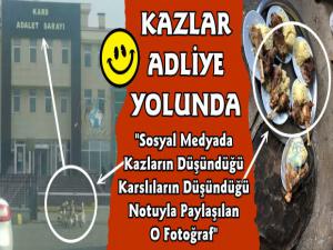 Vatandaşların özellikle Kars sayfalarında Kars Adliyesi nizamiyesinden içeri giren kazların çekildiği fotoğrafı sosyal medya hesaplarında; "Kars'ta kaz kesiminin yaklaştığını hisseden kazlar, Savcılığa gidip koruma kararı istemişler" notuyla yapılan paylaşımlar beğeni topladı.