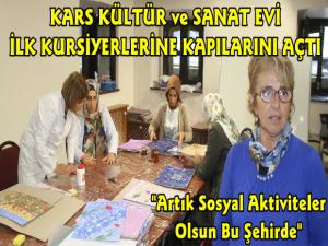 Kars Valiliği Kültür ve Sanat Evi ilk kurslarına Hat-Tezhip ve Ebruli, Gitar, Bağlama, Osmanlıca, Enstrüman çalgılar Diksiyon ve Drama kursları ile başladı. Hat-Tezhip Ebru kursu çalışmalarına Kadınların yoğun ilgi gösterdiği görüldü.
