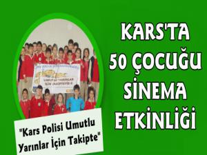 Kars İl Emniyet Müdürlüğü Çocuk Şube Müdürlüğü tarafından hazırlanarak ÇOGEP kapsamında yürütülen Umutlu Yarınlar İçin Takipteyiz-2 Projesi ile; 05-17 yaş aralığındaki çocuklar için sinema etkinliği düzenlendi.
