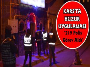 Kars Güncel-14.10.2019 günü Ülke genelinde eş zamanlı olarak Genel asayişin ve kamu düzeninin devamının sağlanması amacıyla; kamu kurum ve kuruluşları civarında, stratejik öneme haiz bölgelerde, özellikle vatandaşlarımızın yoğun olarak bulundukları yerlerde (toplu taşıma araçları, duraklar, otogarlar, tren garları, havaalanları, deniz ulaşımı, meydanlar, alışveriş merkezleri, park, bahçeler vb.) Türkiye Güven Huzur (2019-4) Uygulaması kapsamında il merkezi ve ilçelerimizde 59 ekip ve 219 personelimizin katılımı ile yapılan denetim ve uygulamalarda;